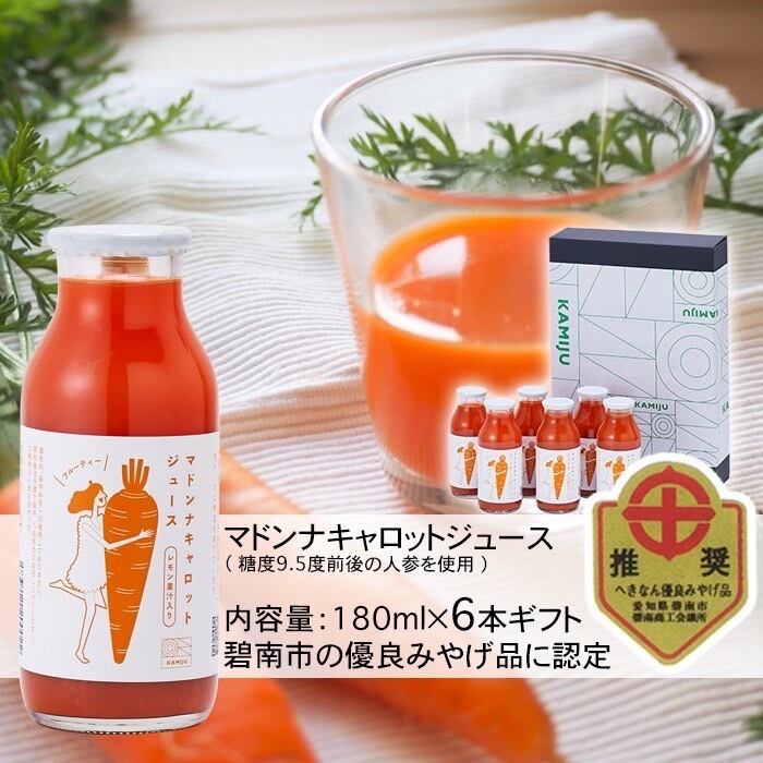無添加 極上フルーティーマドンナキャロットジュース 180㎖×6本(化粧箱入り)商品番号1